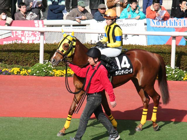イタリア語で「旗」。母ナショナルフラッグより。さすがに旗を手にしてというわけにはいかないだろうが、勝利の後の歓喜のウイニングランが楽しみだ。 |