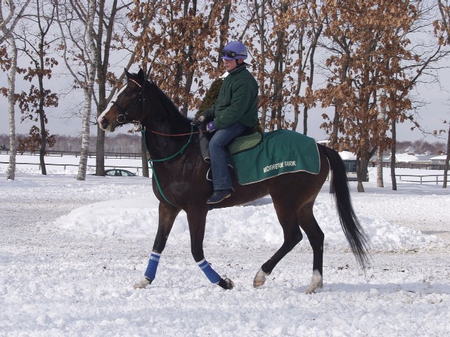 「西風の小妖精」。母の名前より連想して命名。軽やかな走りでライバルたちを幻惑する姿が目に浮かんでくる。 |